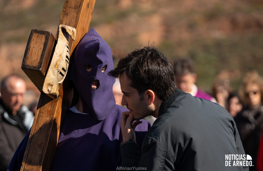 El Vía Crucis al Calvario es uno de los actos más representativos e irrepetibles de la Semana Santa riojana. La cruz grande, de 23 kilos, exige de sus portadores un esfuerzo físico y espiritual considerable: uno carga en la parte delantera, como Jesús, y el otro en la trasera en posición inclinada, como el Cirineo. El recorrido parte desde la iglesia de San Cosme y San Damián, tras el Sermón de la Cruz, y discurre por las calles del casco histórico de Arnedo hasta coronar el Calvario.