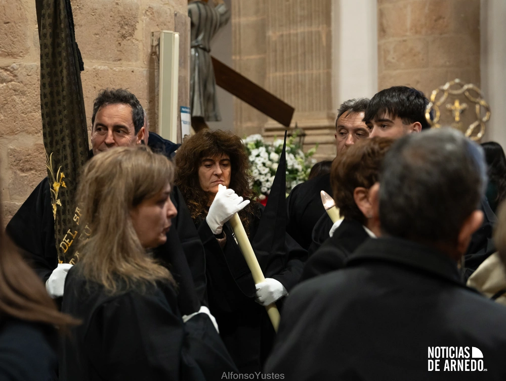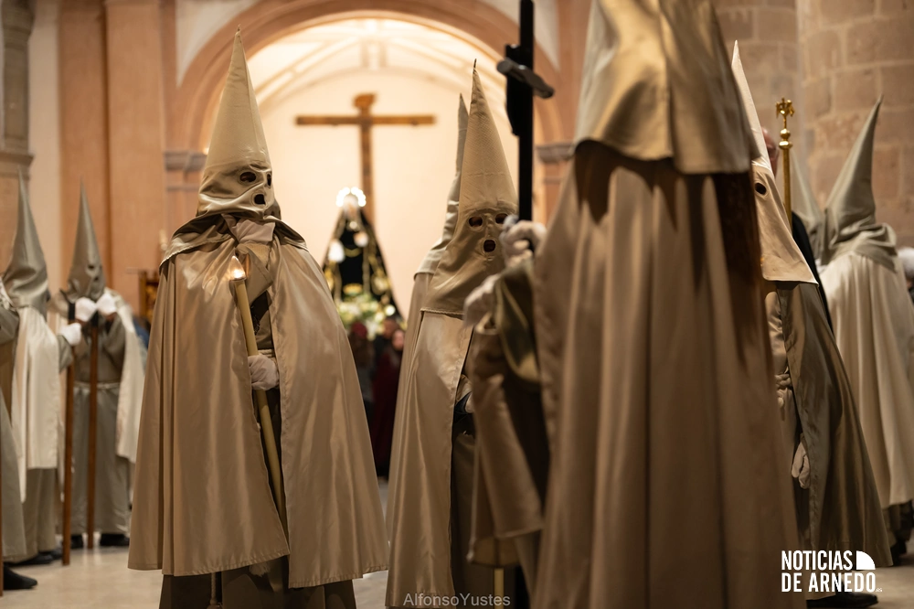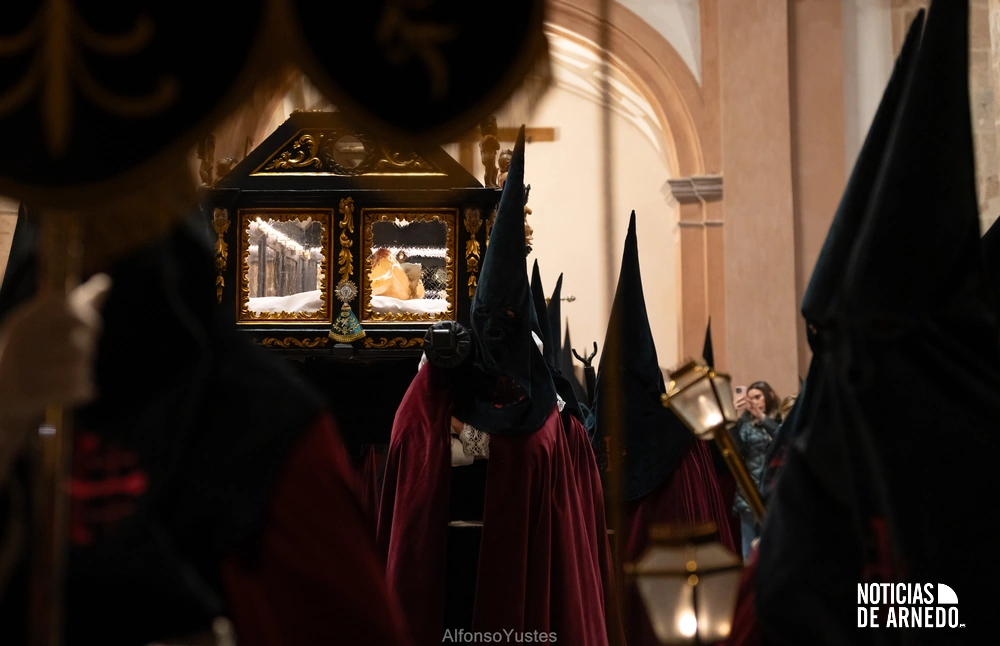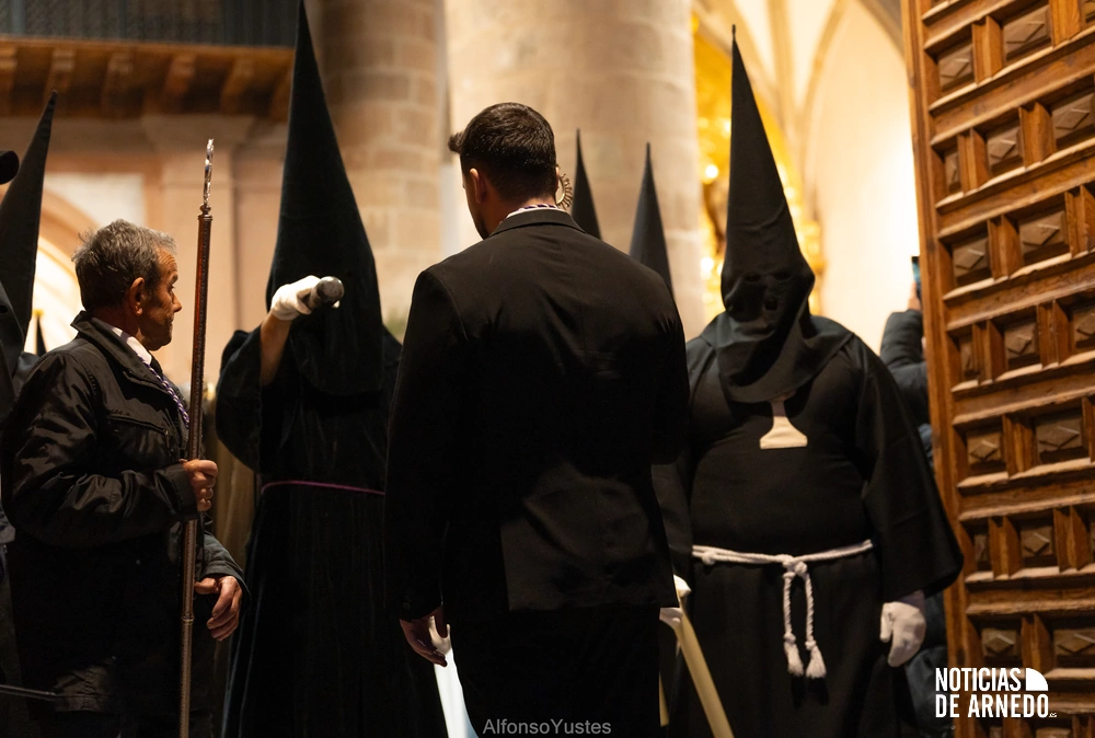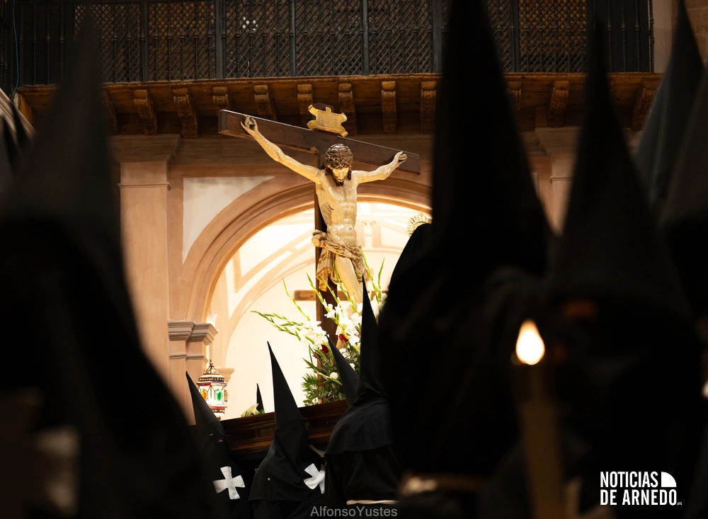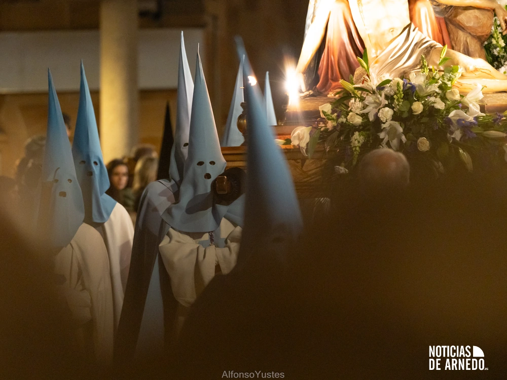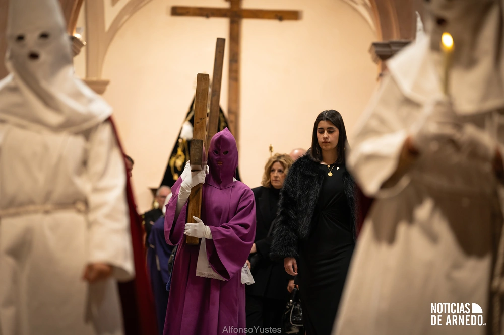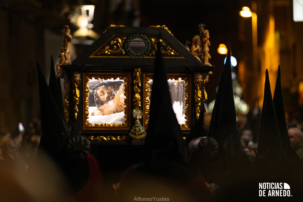 La Procesión del Silencio recorrió en la noche del Viernes Santo las calles del Arnedo en una de las estampas más solemnes de la Semana Santa 2026. La procesión partió a las 21:00 horas desde la iglesia de San Cosme y San Damián y siguió su recorrido habitual por la calle San Cosme, calle Mayor, Picota, plaza Nuestra Señora de Vico y calle Preciados, antes de regresar al templo. Organizada por la Cofradía de la Santa Vera Cruz en colaboración con la Parroquia y el Ayuntamiento de Arnedo, tal y como reflejan las imágenes captadas por Alfonso Yustes, colaborador de Noticias de Arnedo.