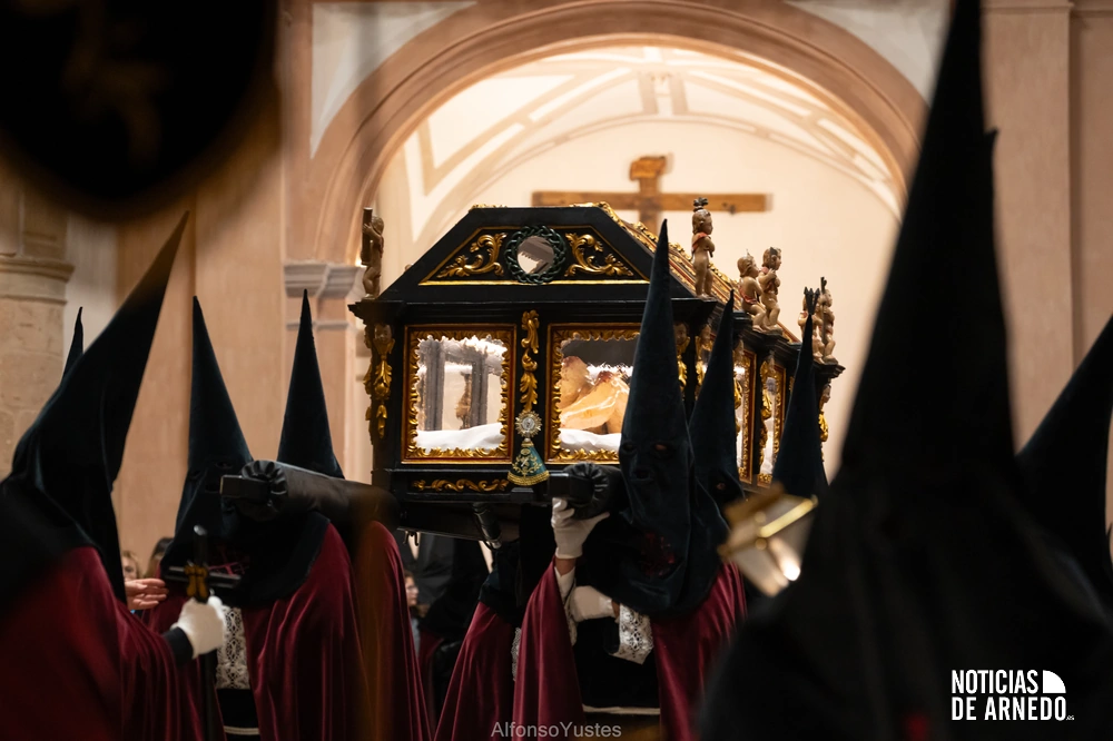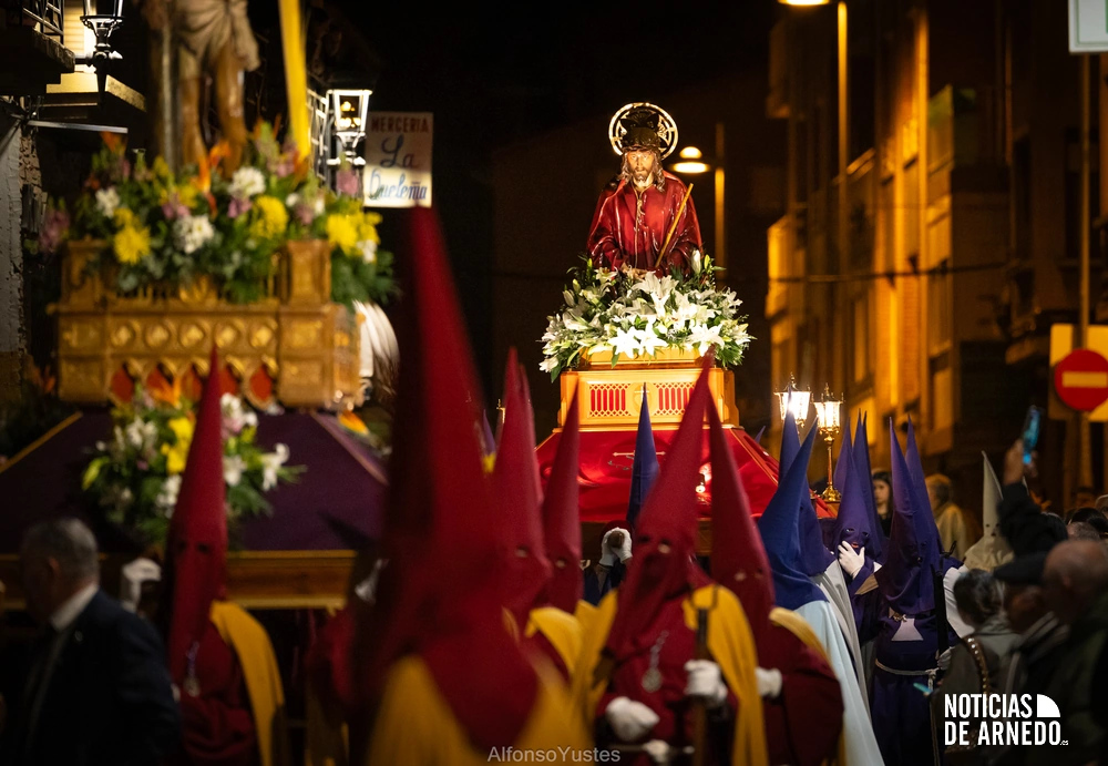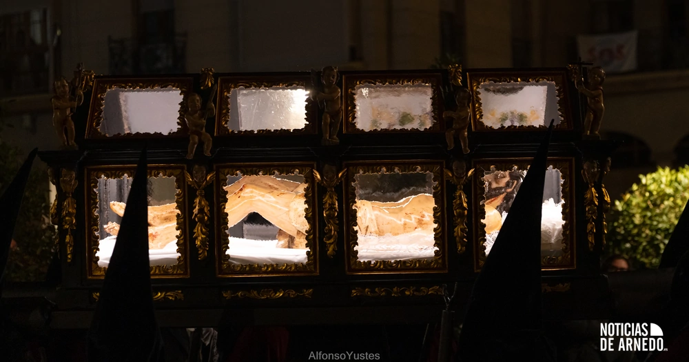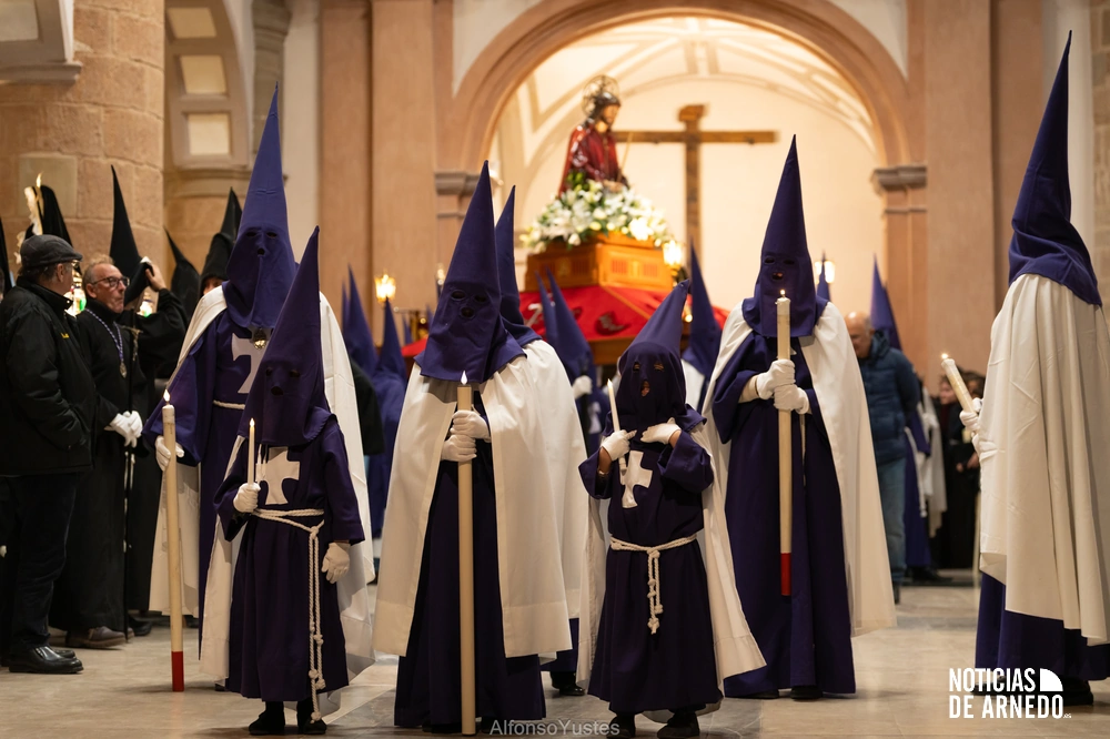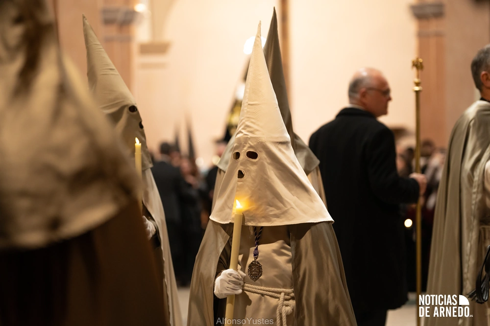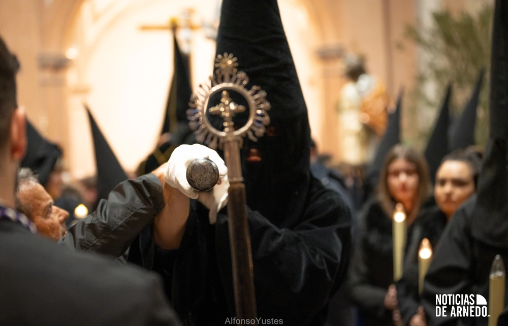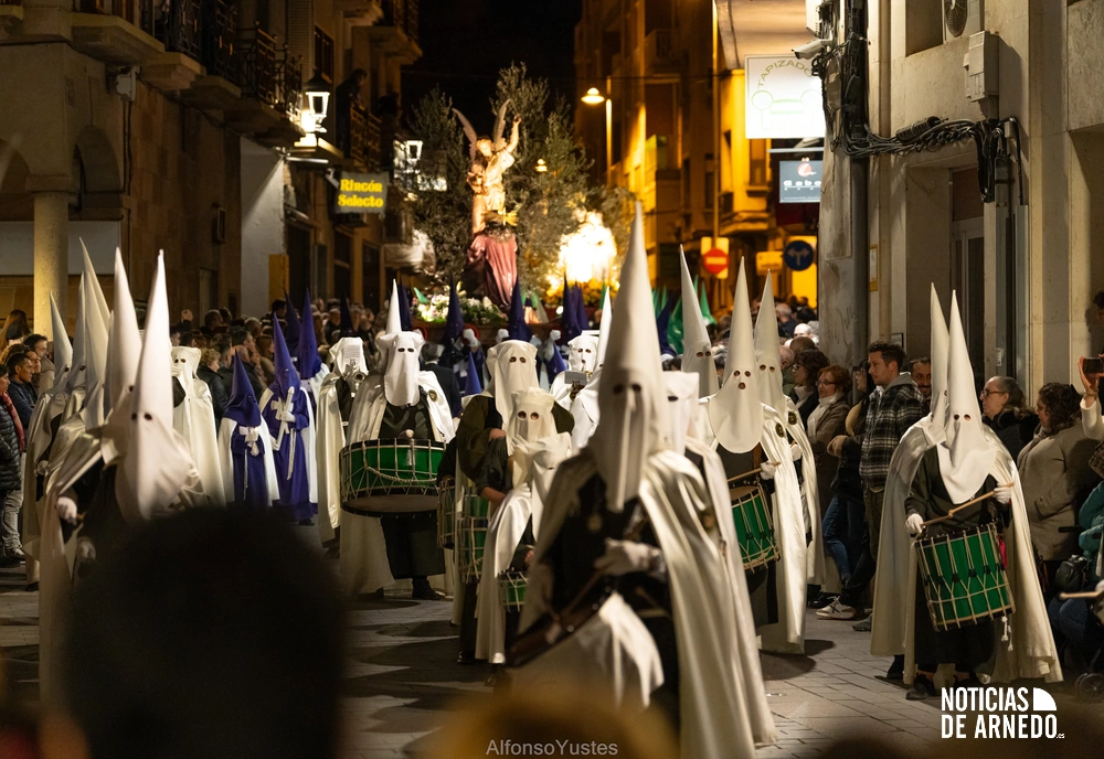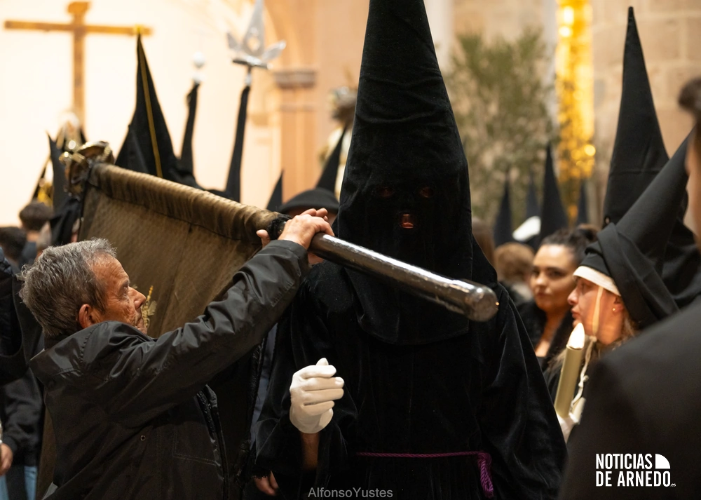 La Procesión del Silencio recorrió en la noche del Viernes Santo las calles del Arnedo en una de las estampas más solemnes de la Semana Santa 2026. La procesión partió a las 21:00 horas desde la iglesia de San Cosme y San Damián y siguió su recorrido habitual por la calle San Cosme, calle Mayor, Picota, plaza Nuestra Señora de Vico y calle Preciados, antes de regresar al templo. Organizada por la Cofradía de la Santa Vera Cruz en colaboración con la Parroquia y el Ayuntamiento de Arnedo, tal y como reflejan las imágenes captadas por Alfonso Yustes, colaborador de Noticias de Arnedo.