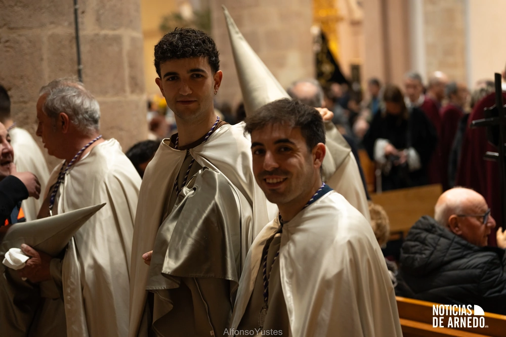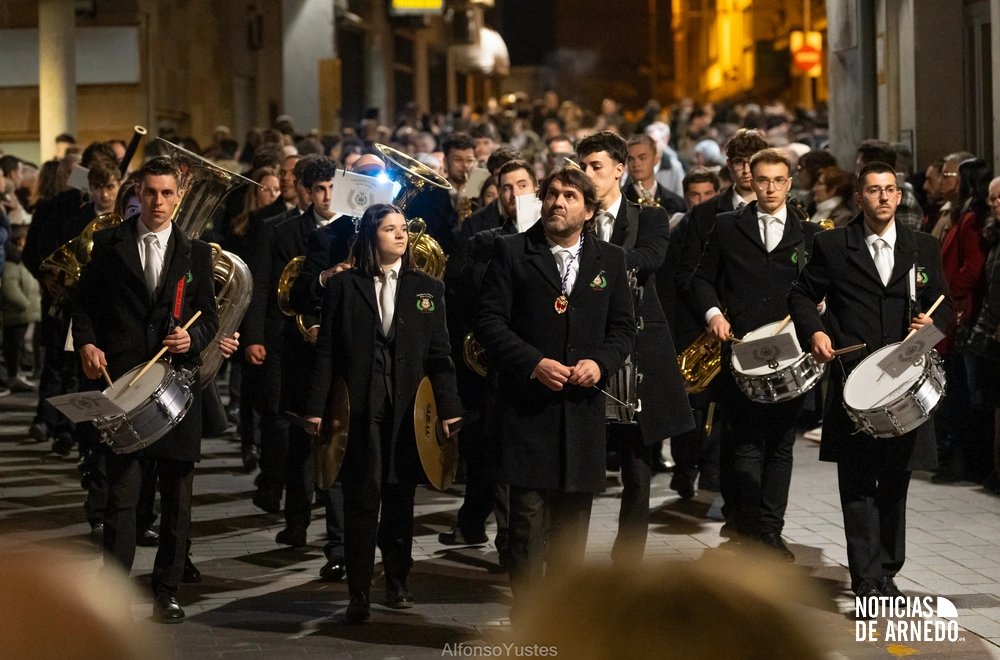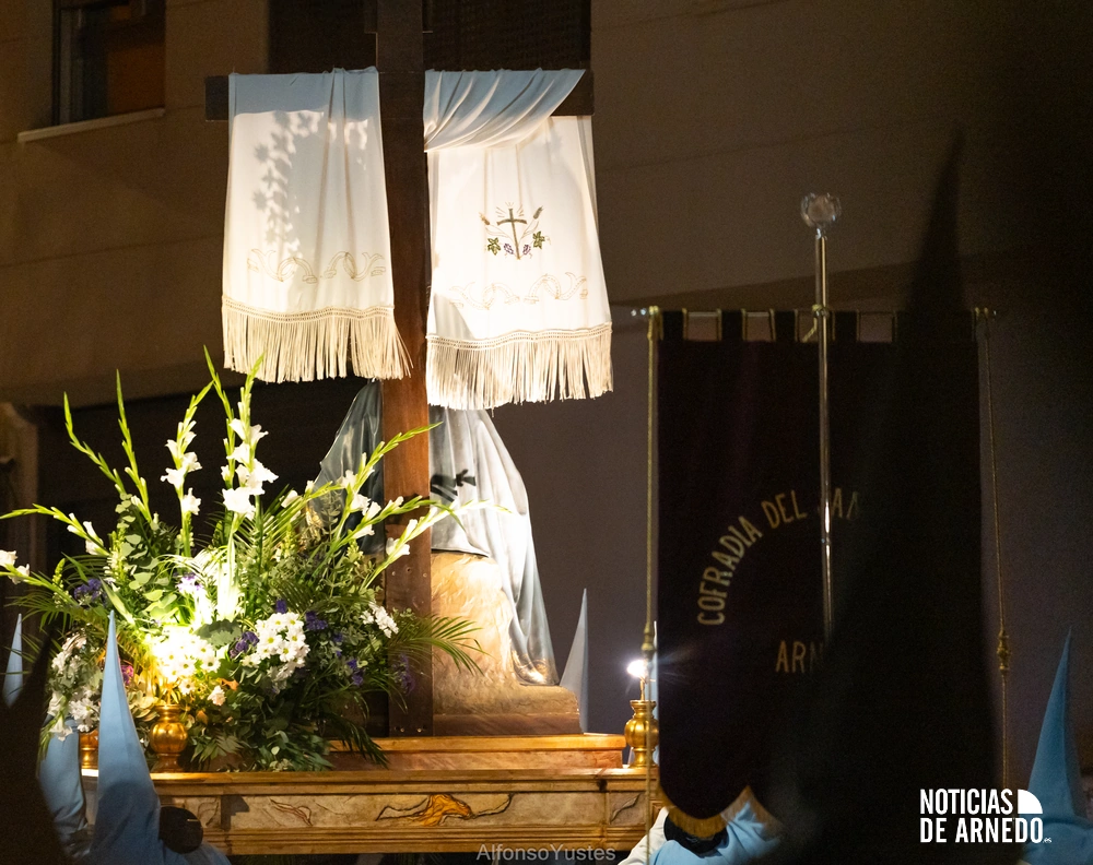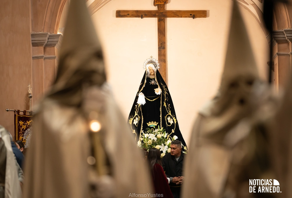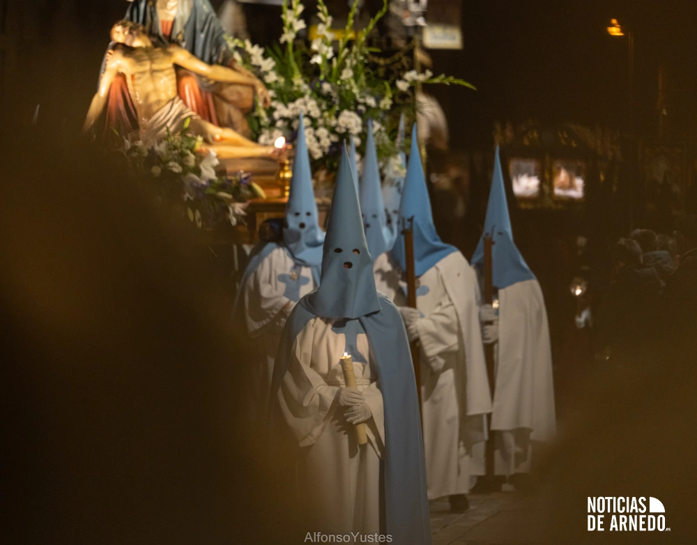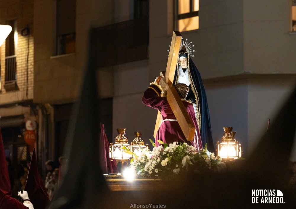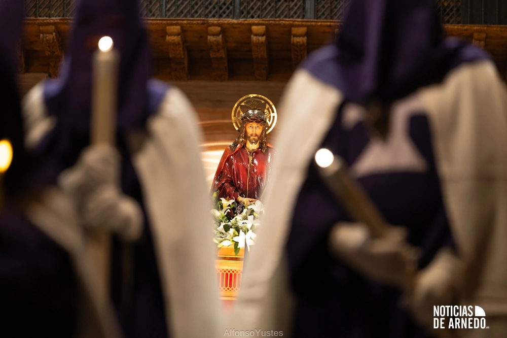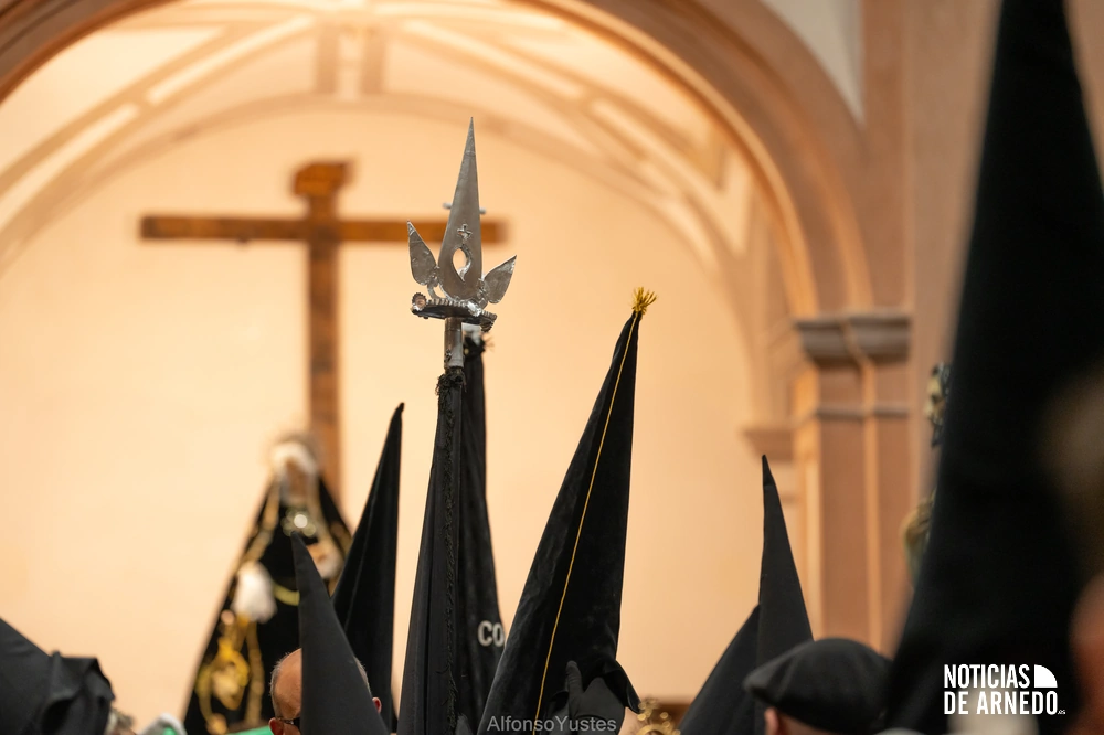 La Procesión del Silencio recorrió en la noche del Viernes Santo las calles del Arnedo en una de las estampas más solemnes de la Semana Santa 2026. La procesión partió a las 21:00 horas desde la iglesia de San Cosme y San Damián y siguió su recorrido habitual por la calle San Cosme, calle Mayor, Picota, plaza Nuestra Señora de Vico y calle Preciados, antes de regresar al templo. Organizada por la Cofradía de la Santa Vera Cruz en colaboración con la Parroquia y el Ayuntamiento de Arnedo, tal y como reflejan las imágenes captadas por Alfonso Yustes, colaborador de Noticias de Arnedo.