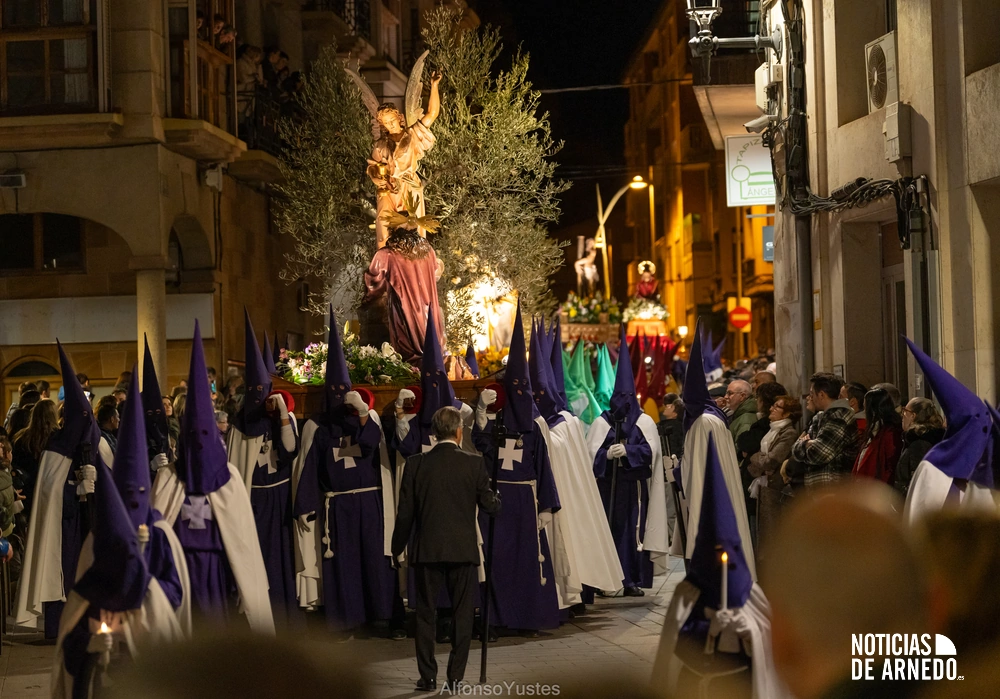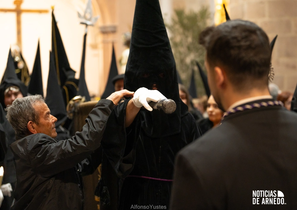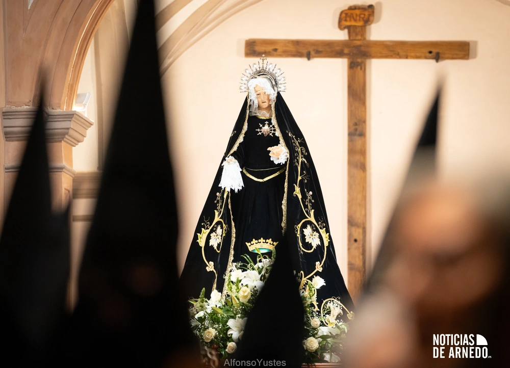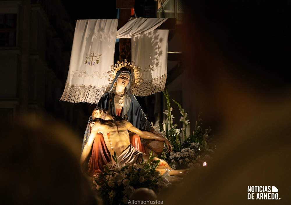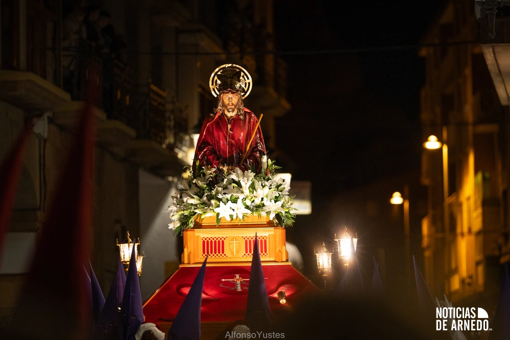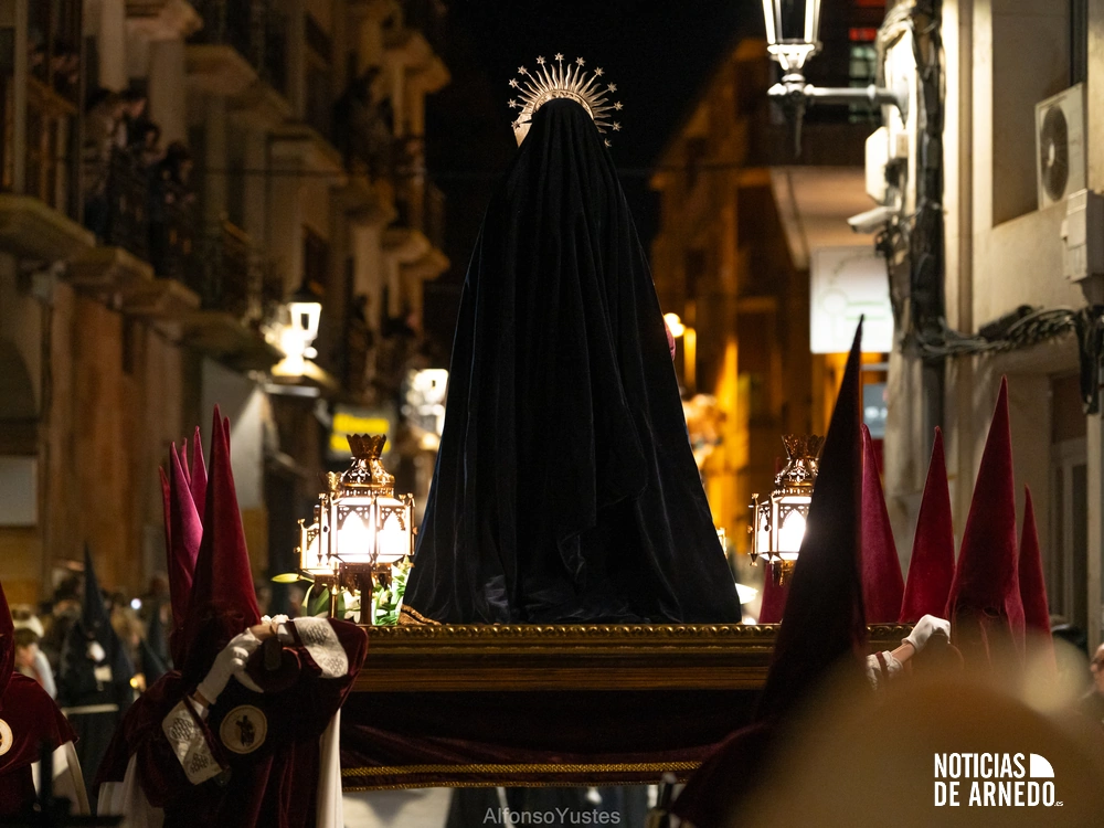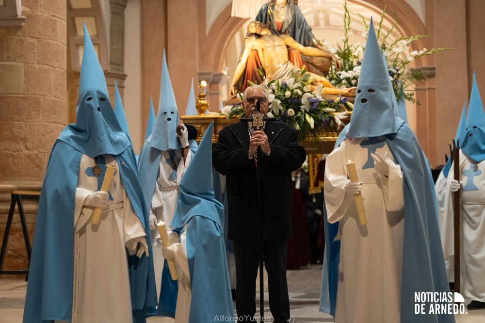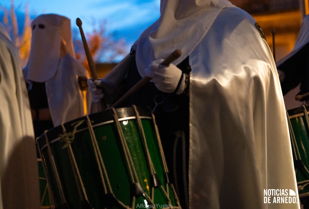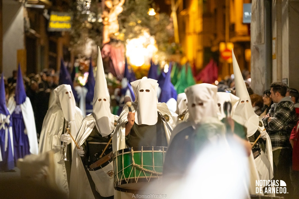 La Procesión del Silencio recorrió en la noche del Viernes Santo las calles del Arnedo en una de las estampas más solemnes de la Semana Santa 2026. La procesión partió a las 21:00 horas desde la iglesia de San Cosme y San Damián y siguió su recorrido habitual por la calle San Cosme, calle Mayor, Picota, plaza Nuestra Señora de Vico y calle Preciados, antes de regresar al templo. Organizada por la Cofradía de la Santa Vera Cruz en colaboración con la Parroquia y el Ayuntamiento de Arnedo, tal y como reflejan las imágenes captadas por Alfonso Yustes, colaborador de Noticias de Arnedo.