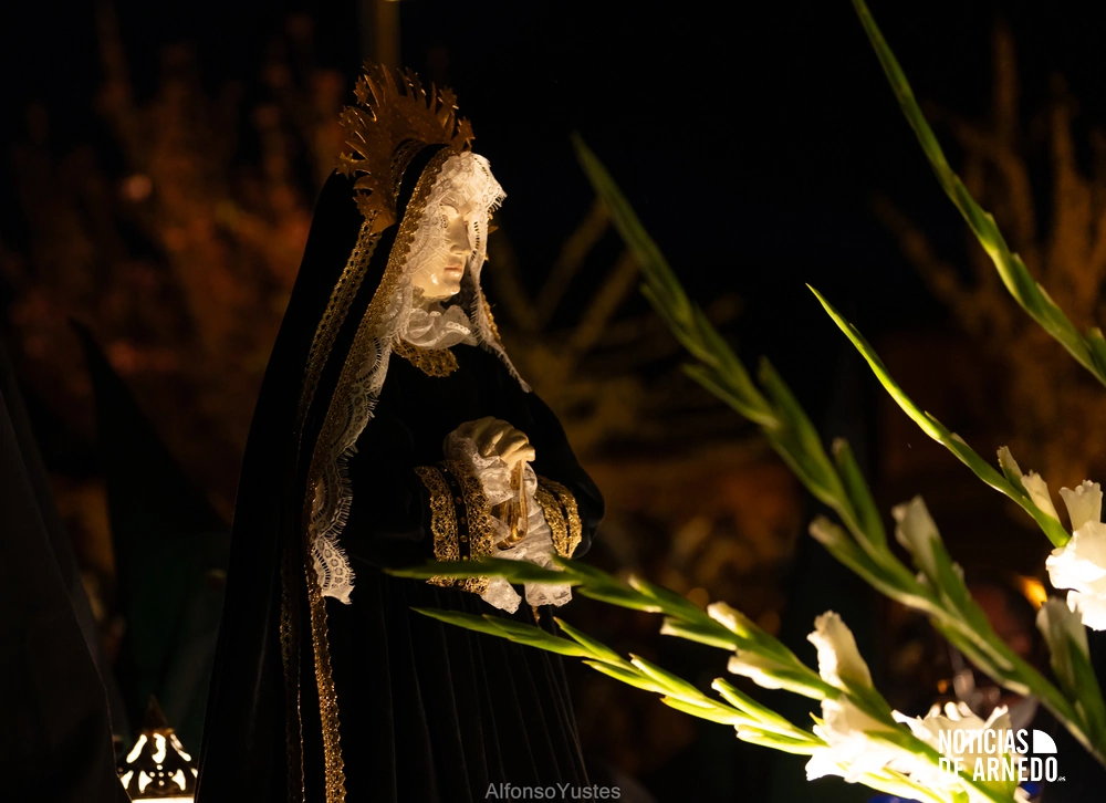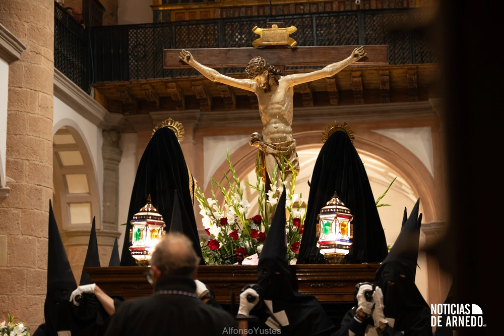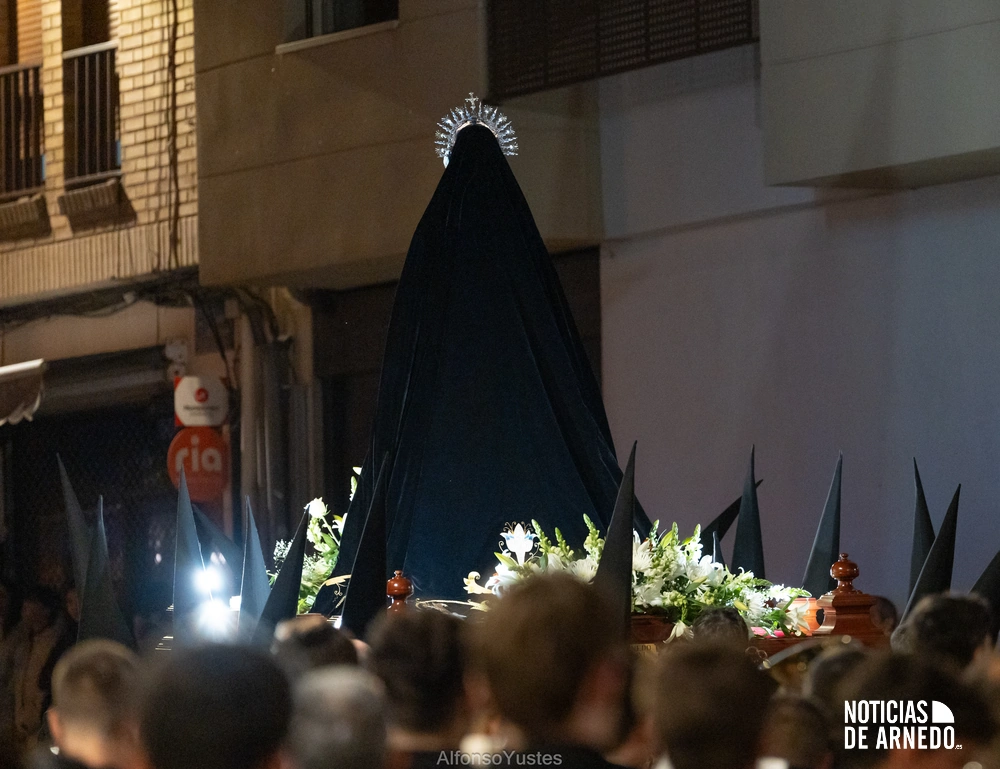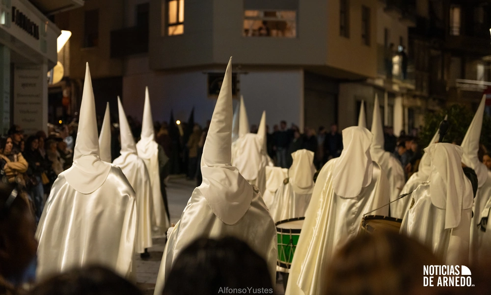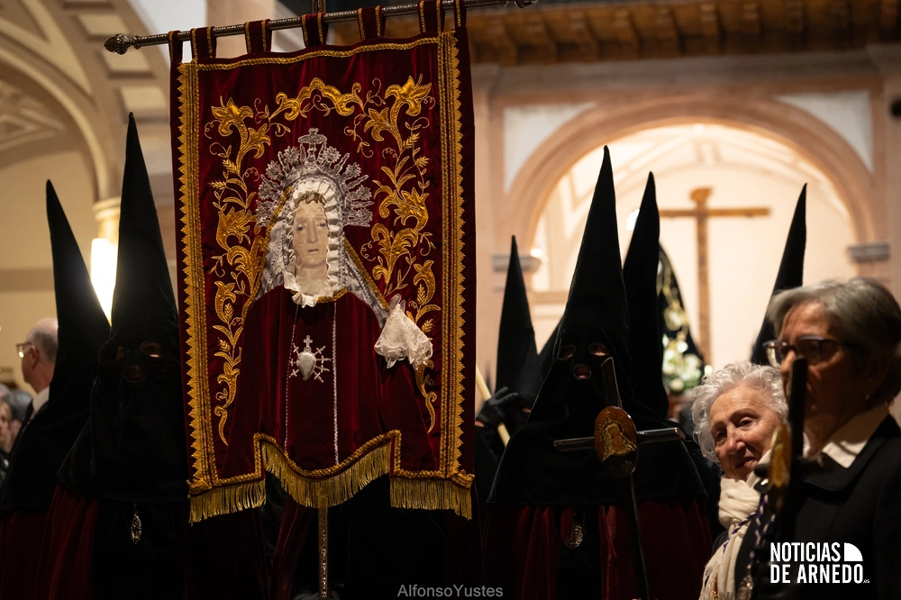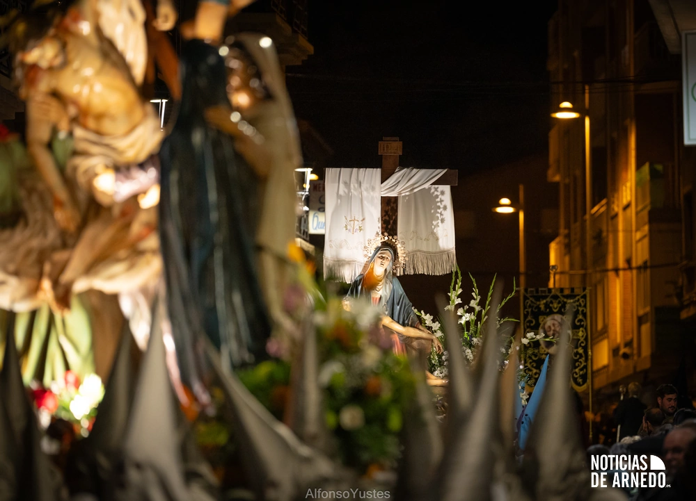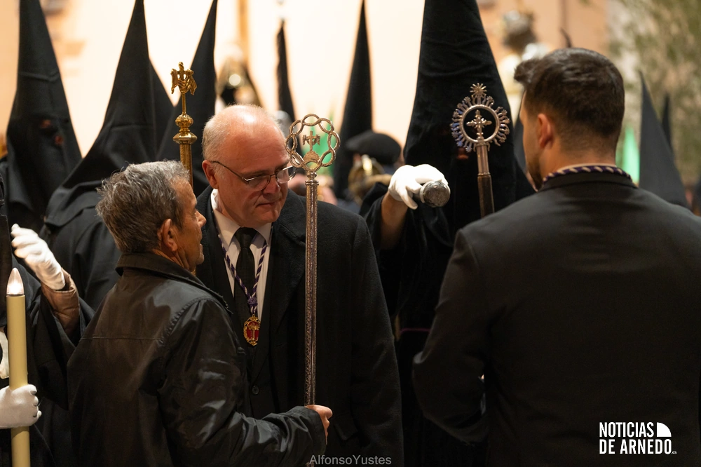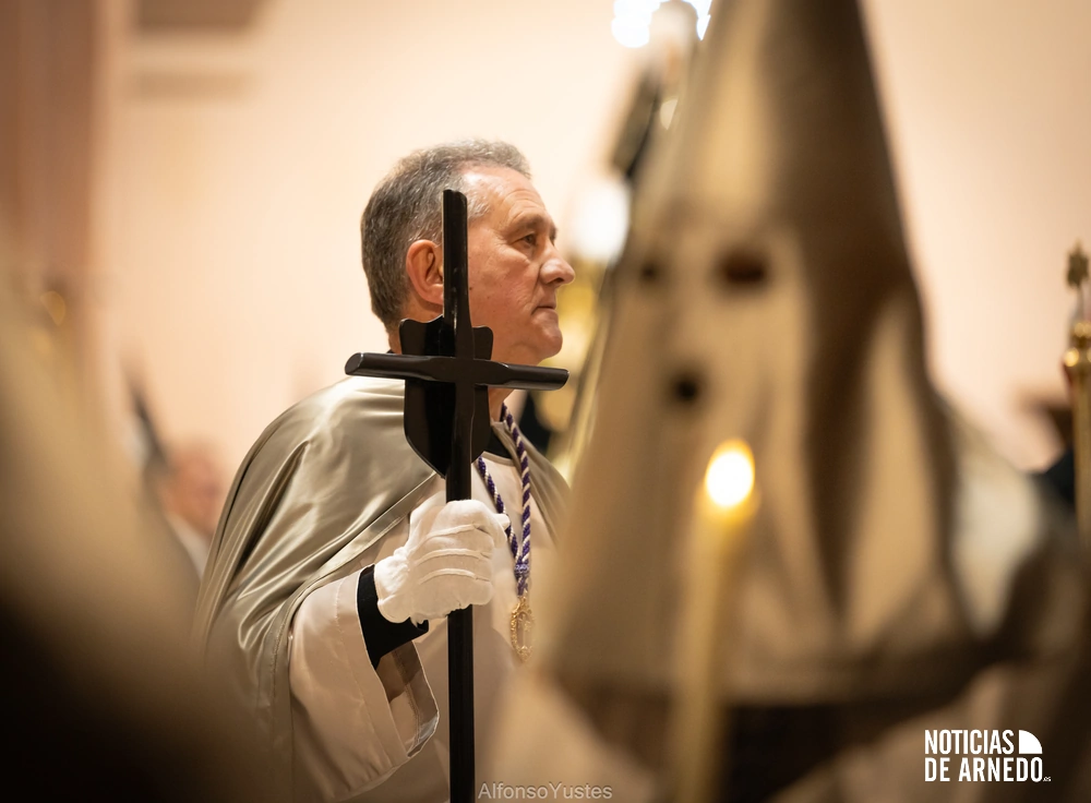 La Procesión del Silencio recorrió en la noche del Viernes Santo las calles del Arnedo en una de las estampas más solemnes de la Semana Santa 2026. La procesión partió a las 21:00 horas desde la iglesia de San Cosme y San Damián y siguió su recorrido habitual por la calle San Cosme, calle Mayor, Picota, plaza Nuestra Señora de Vico y calle Preciados, antes de regresar al templo. Organizada por la Cofradía de la Santa Vera Cruz en colaboración con la Parroquia y el Ayuntamiento de Arnedo, tal y como reflejan las imágenes captadas por Alfonso Yustes, colaborador de Noticias de Arnedo.