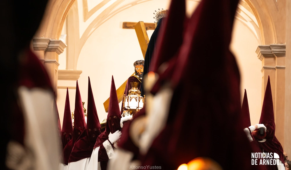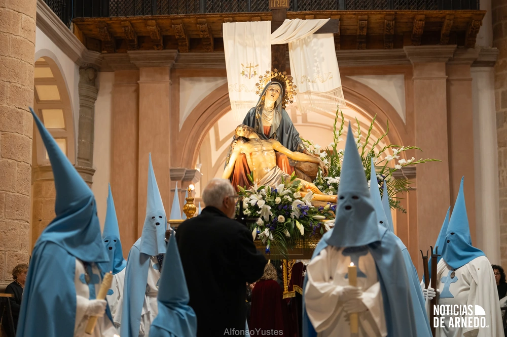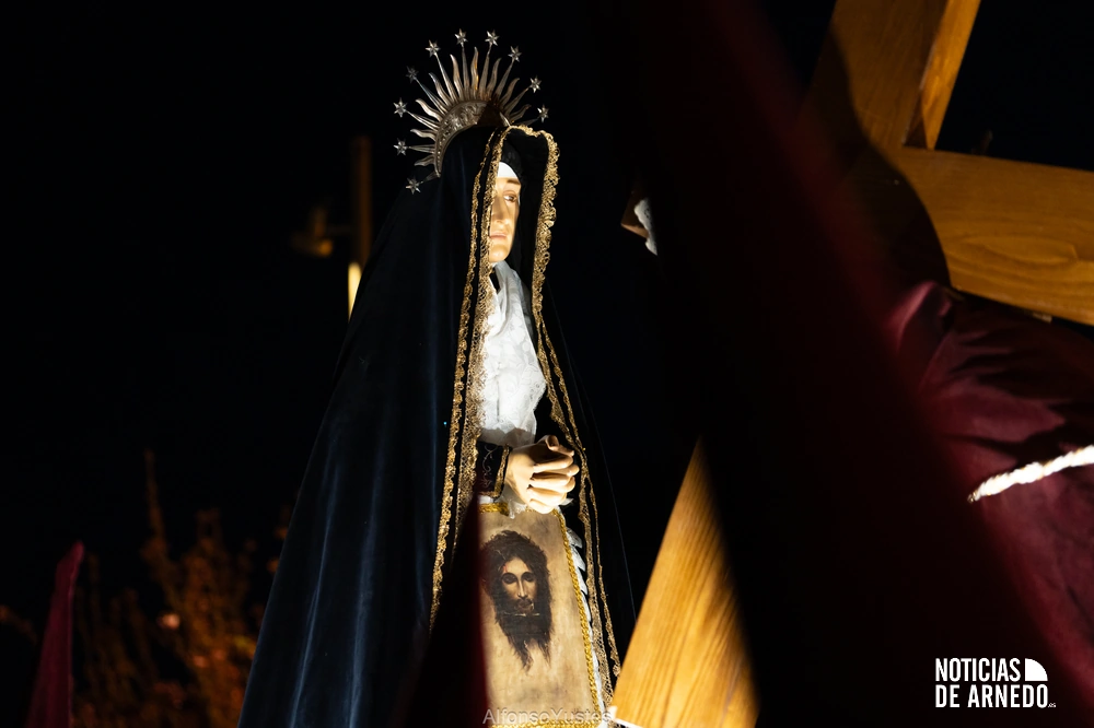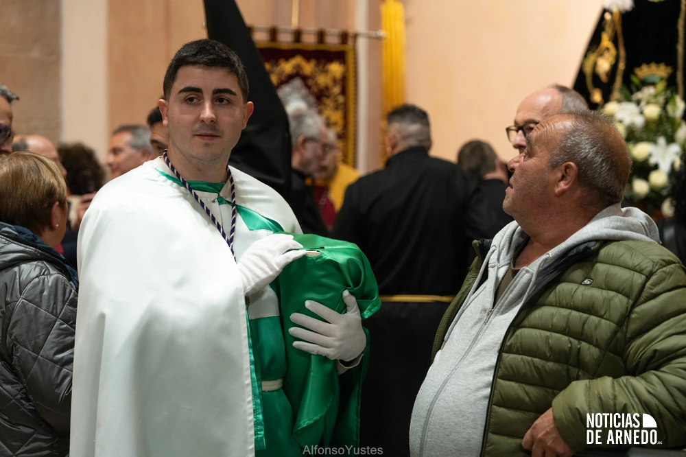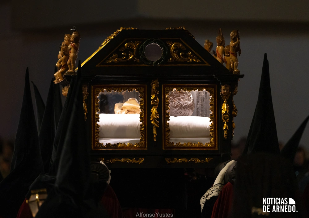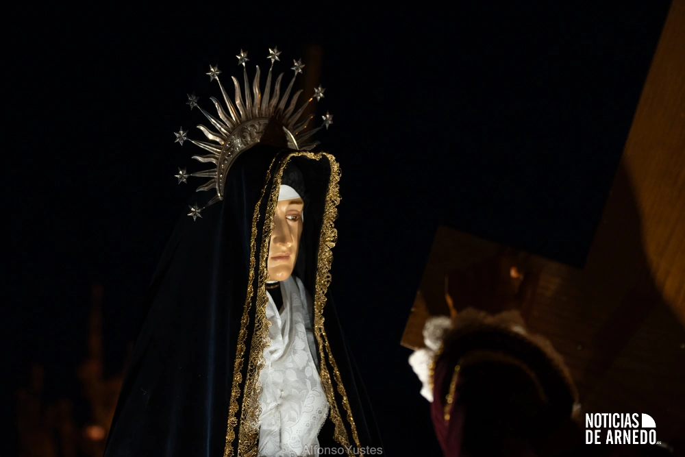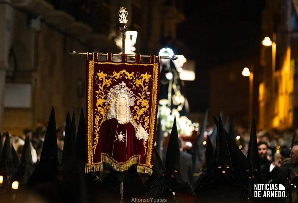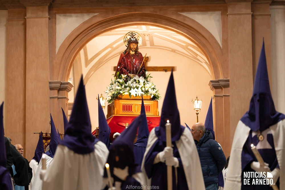 La Procesión del Silencio recorrió en la noche del Viernes Santo las calles del Arnedo en una de las estampas más solemnes de la Semana Santa 2026. La procesión partió a las 21:00 horas desde la iglesia de San Cosme y San Damián y siguió su recorrido habitual por la calle San Cosme, calle Mayor, Picota, plaza Nuestra Señora de Vico y calle Preciados, antes de regresar al templo. Organizada por la Cofradía de la Santa Vera Cruz en colaboración con la Parroquia y el Ayuntamiento de Arnedo, tal y como reflejan las imágenes captadas por Alfonso Yustes, colaborador de Noticias de Arnedo.