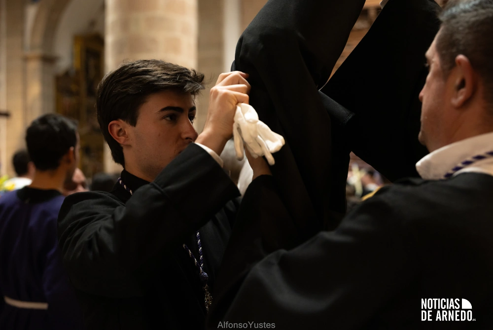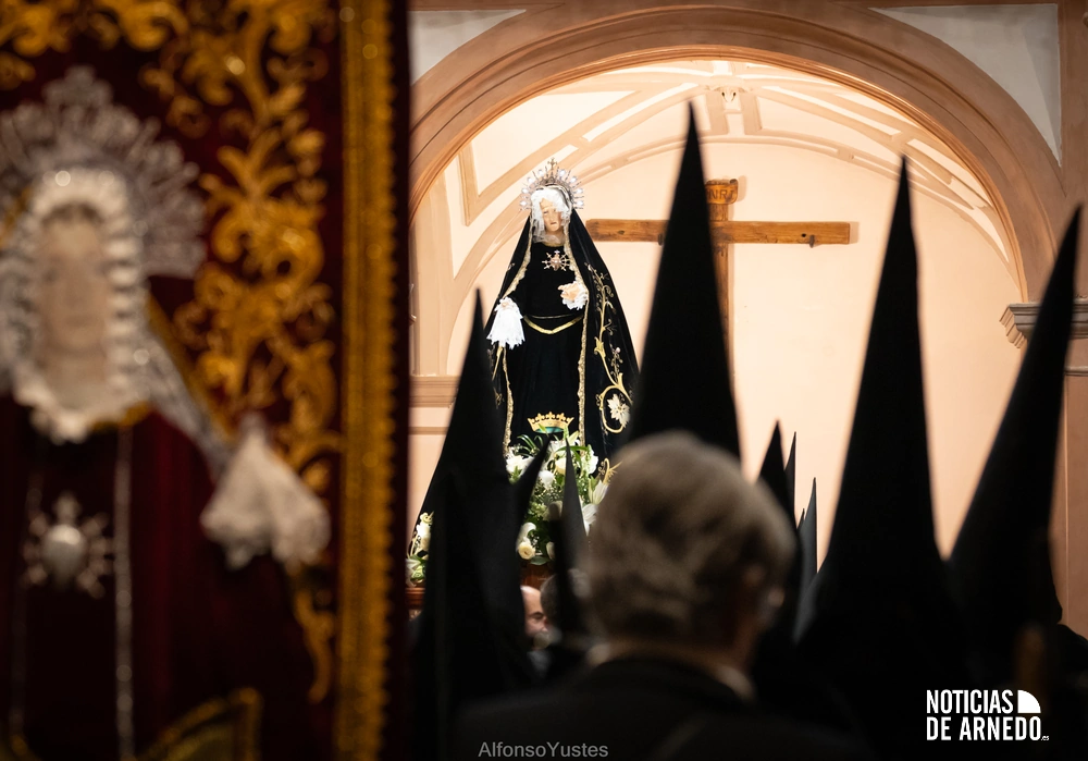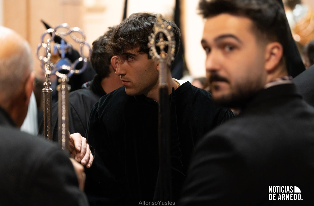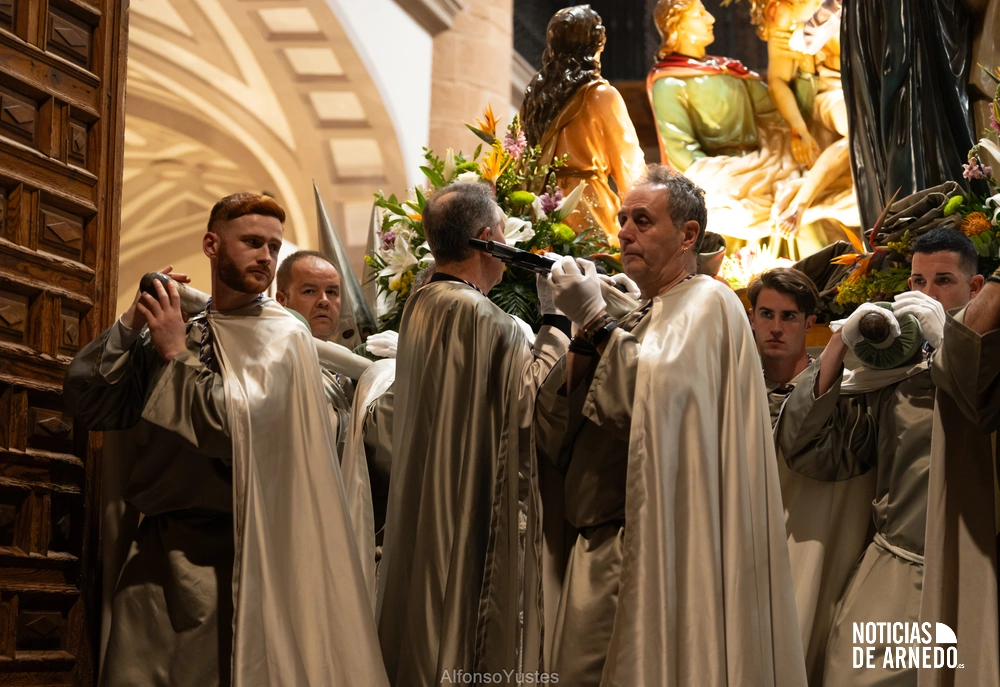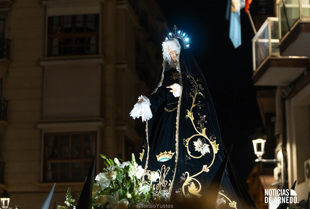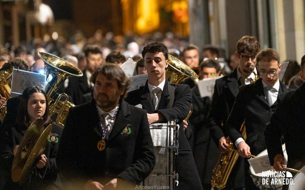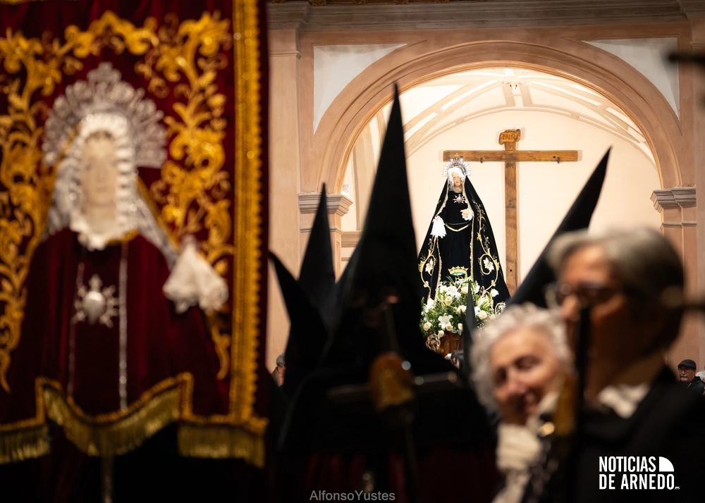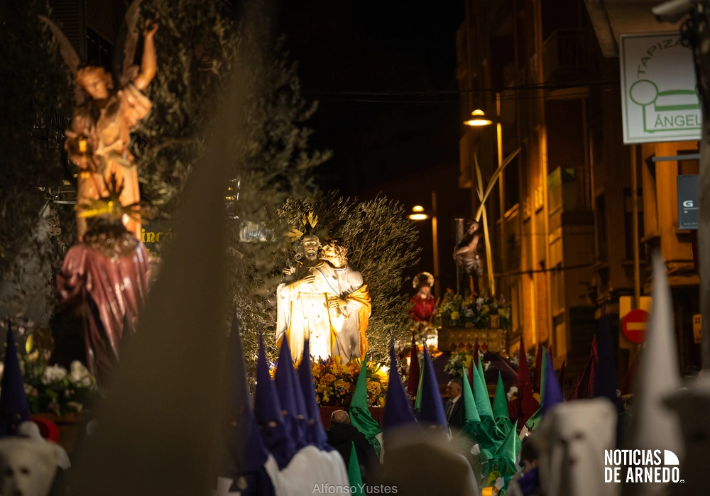 La Procesión del Silencio recorrió en la noche del Viernes Santo las calles del Arnedo en una de las estampas más solemnes de la Semana Santa 2026. La procesión partió a las 21:00 horas desde la iglesia de San Cosme y San Damián y siguió su recorrido habitual por la calle San Cosme, calle Mayor, Picota, plaza Nuestra Señora de Vico y calle Preciados, antes de regresar al templo. Organizada por la Cofradía de la Santa Vera Cruz en colaboración con la Parroquia y el Ayuntamiento de Arnedo, tal y como reflejan las imágenes captadas por Alfonso Yustes, colaborador de Noticias de Arnedo.