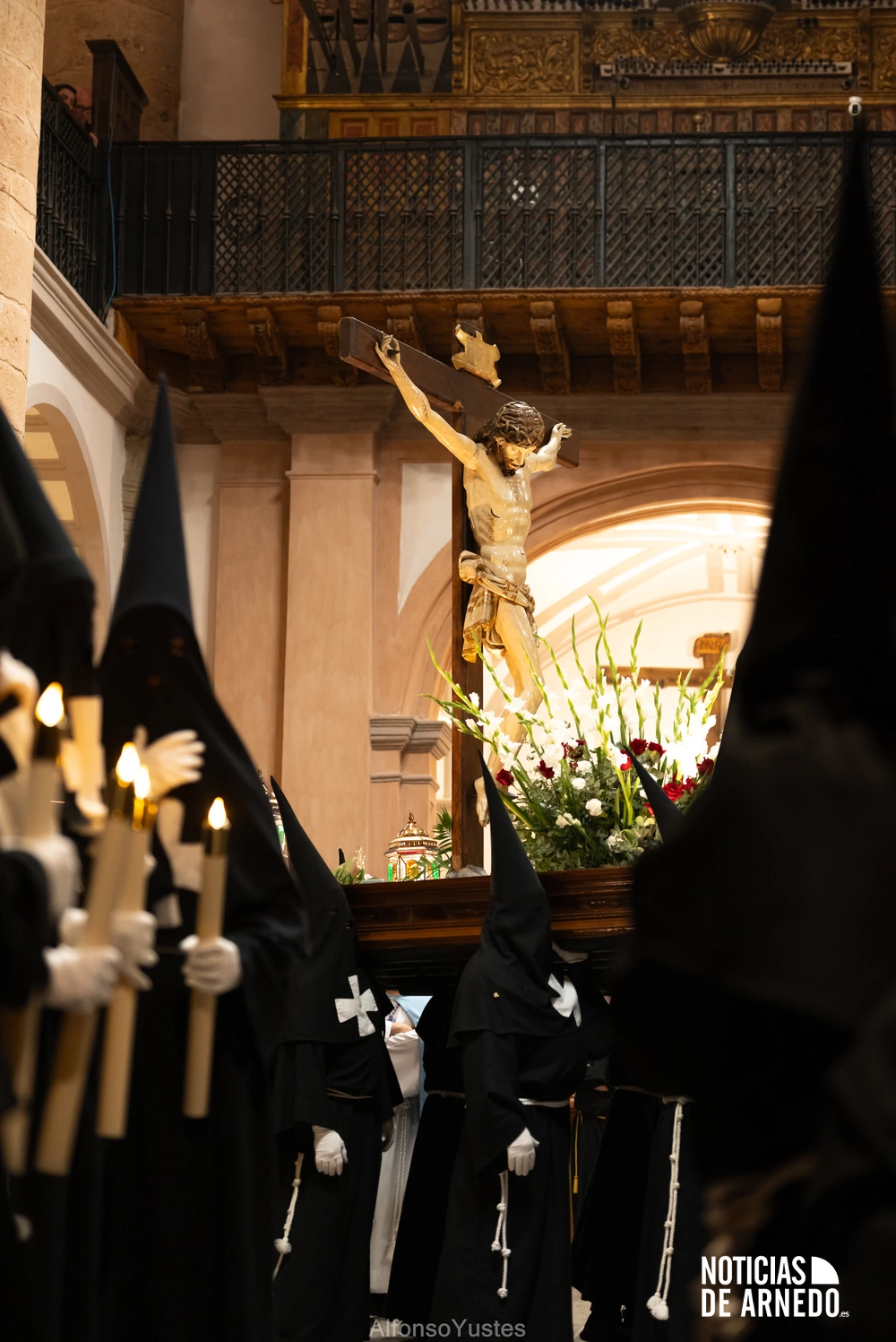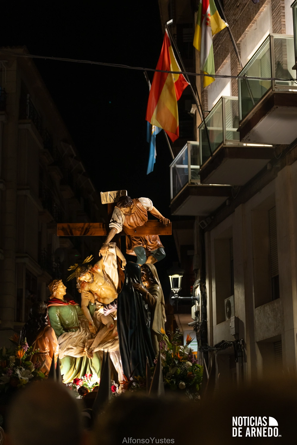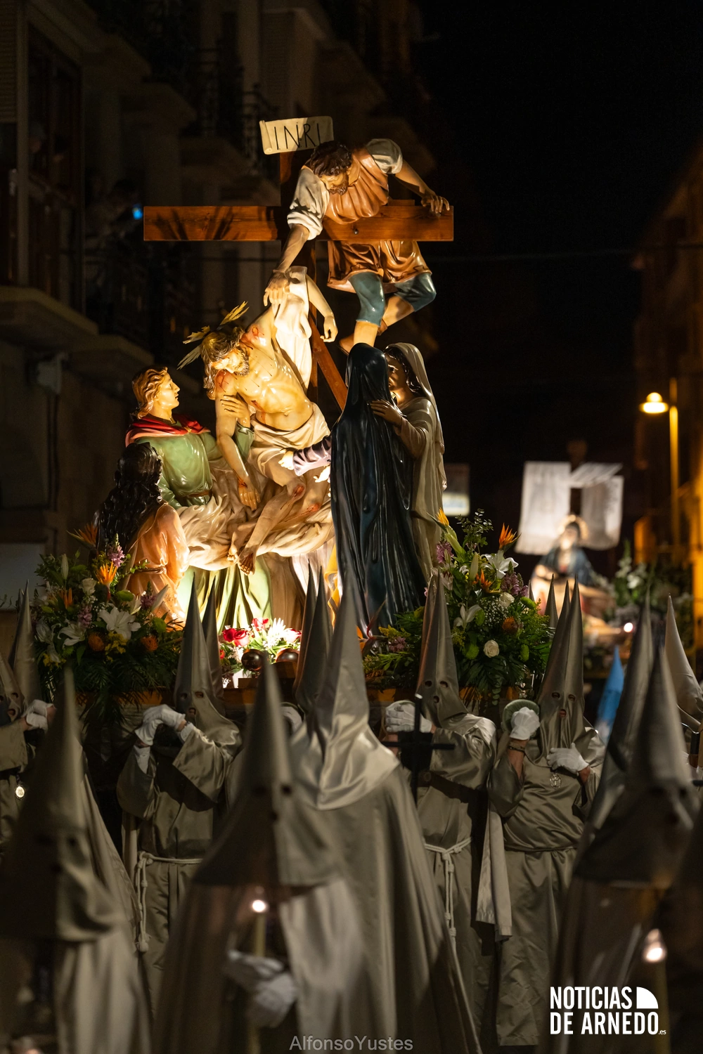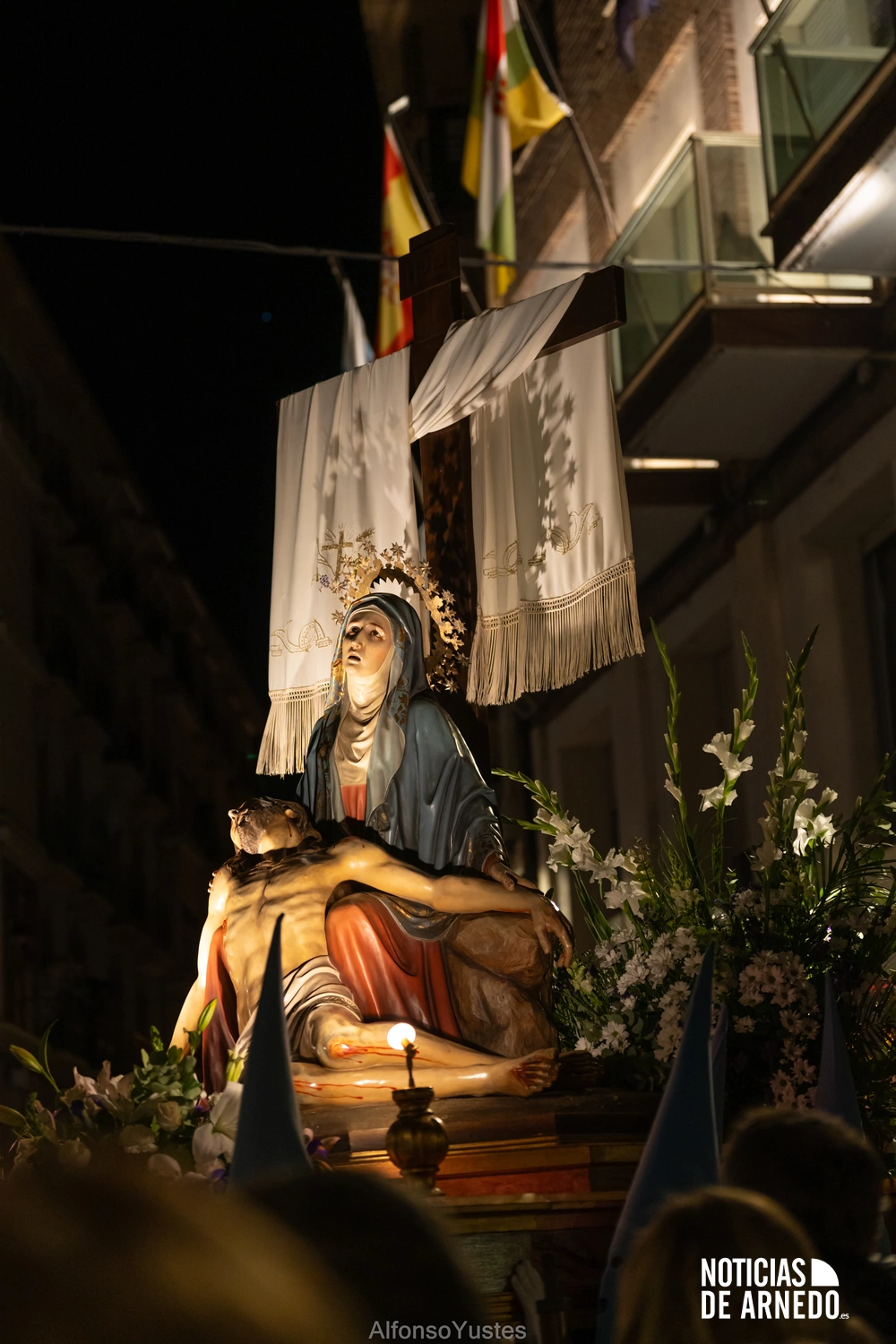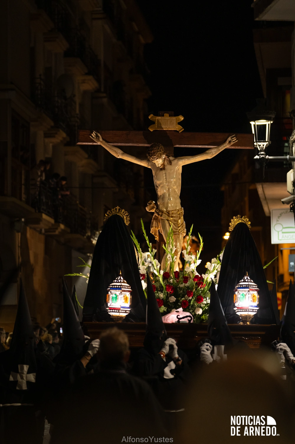 La Procesión del Silencio recorrió en la noche del Viernes Santo las calles del Arnedo en una de las estampas más solemnes de la Semana Santa 2026. La procesión partió a las 21:00 horas desde la iglesia de San Cosme y San Damián y siguió su recorrido habitual por la calle San Cosme, calle Mayor, Picota, plaza Nuestra Señora de Vico y calle Preciados, antes de regresar al templo. Organizada por la Cofradía de la Santa Vera Cruz en colaboración con la Parroquia y el Ayuntamiento de Arnedo, tal y como reflejan las imágenes captadas por Alfonso Yustes, colaborador de Noticias de Arnedo.